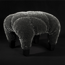 NAILED SUCCESSION look soft from far but is not. Made of 12000 staples, the stool is as brutal as it is sophisticated and refined.