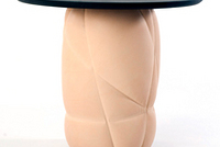 Parker is an oval-shaped stool with a metal ring that creates the impression of a waist being cinched in.